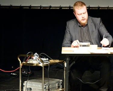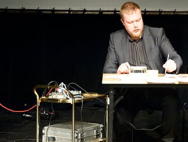 Blomdahl mostly composes music for smaller chamber ensembles, electro-acoustic music and works with sound art and installations. Larger works such as symphonic orchestral pieces and string orchestra are also in his list. His Music is mainly performed in Sweden, both in national TV and the national radio, but also abroad in France, Albania and USA. Tony´s operette Laika, the space dog, for children, has become successful and toured in Europe. Tony is also director of Geiger, an electronic music group that organises event of the same genre. www.tonyblomdahl.se